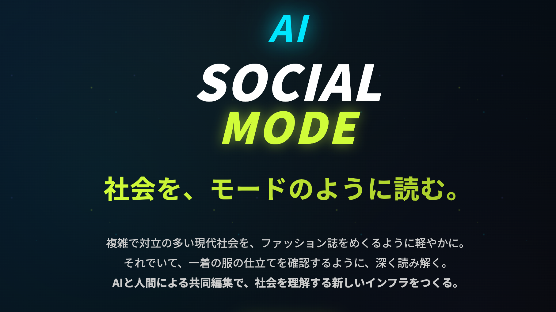 SOCIAL MODEは、AIと共に知性を編み上げ、より良い社会の形を探る実験場です。